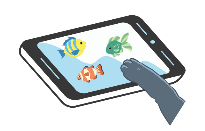 Le chat utilise son nez ou ses pattes pour chasser ce qui bouge sur l'écran : souris, laser, poisson, plumes, insectes et bien d'autres.